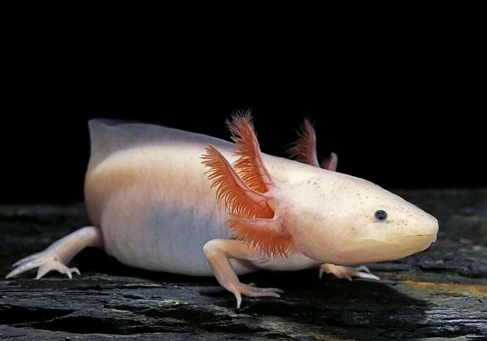 Аксолотль некоторым напоминает маленького водяного дракончика. У личинки есть перепончатые лапы, спинной плавник, который идет по всей длине тела, а из головы растут перистые жабры, похожие на гриву. Особенно умиляет мордочка аксолотлей с глазами-бусинками и ртами, которые как будто бы всегда улыбаются.